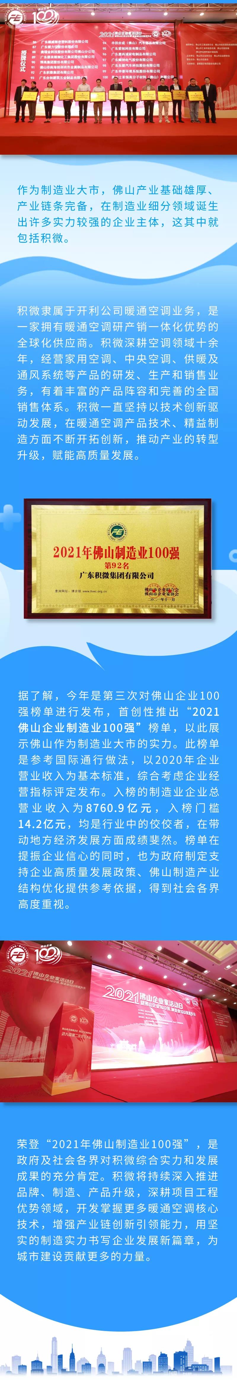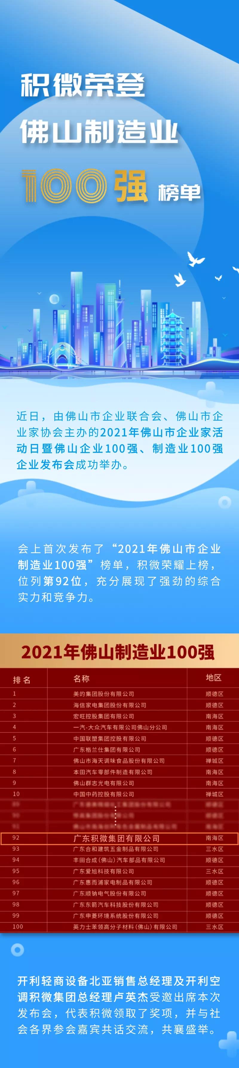 积微荣获2021年“佛山制造业100强”企业称号!-冷暖资讯-冷暖商情