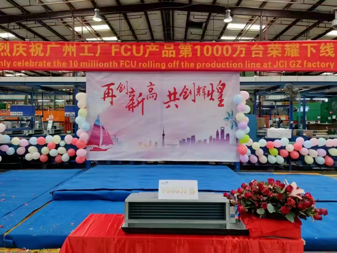 2022年4月2日,广东清远--江森自控独资工厂约克广州空调冷冻设备有限公司第1000万台FCU产品(风盘室内机)下线。