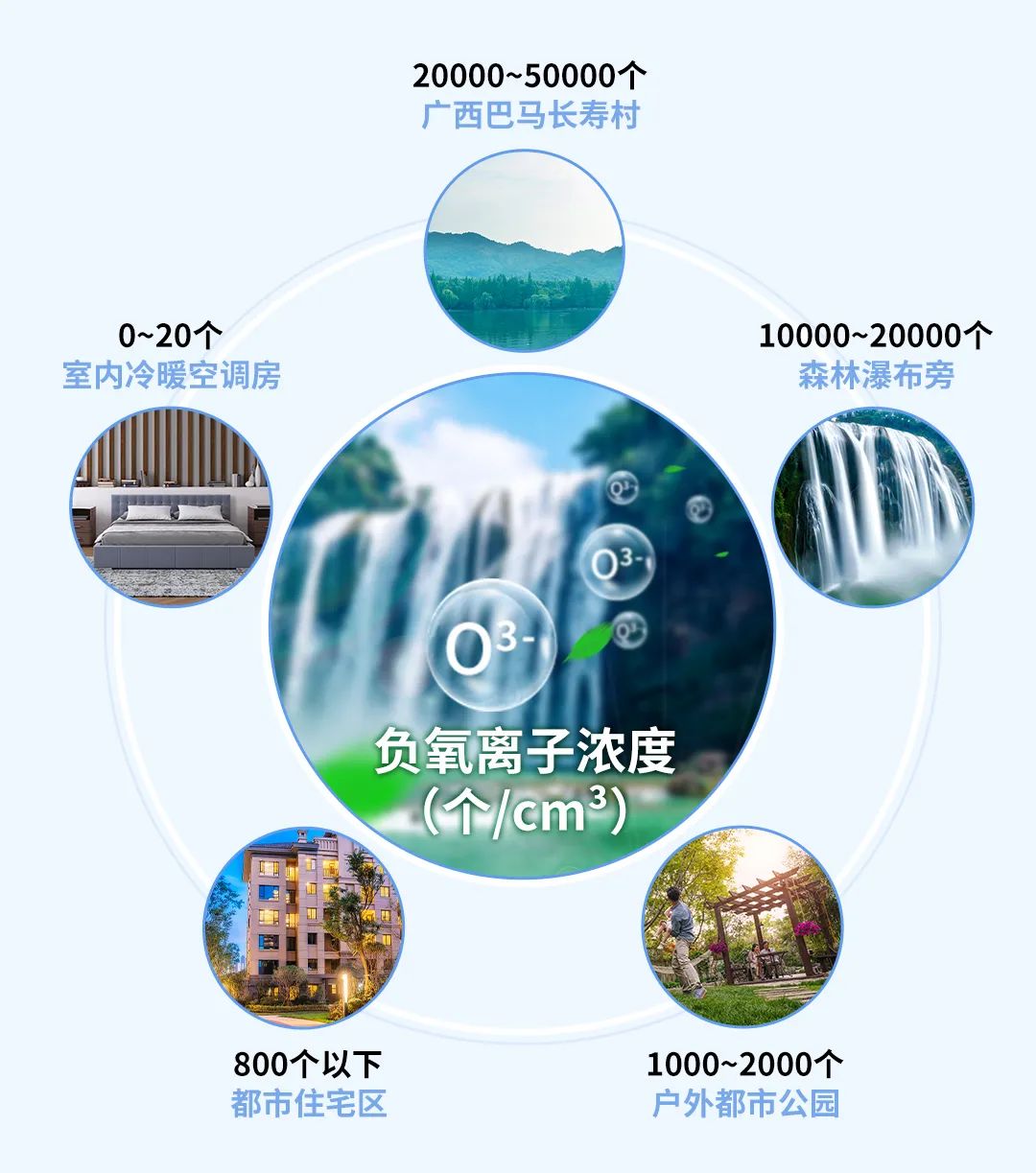 空气维生素,是我们常听到的一个名词——负氧离子。为什么我们在密闭的空间呆久了就会觉得头昏脑胀,到森林、瀑布边就会觉得心旷神怡?都和它有关!