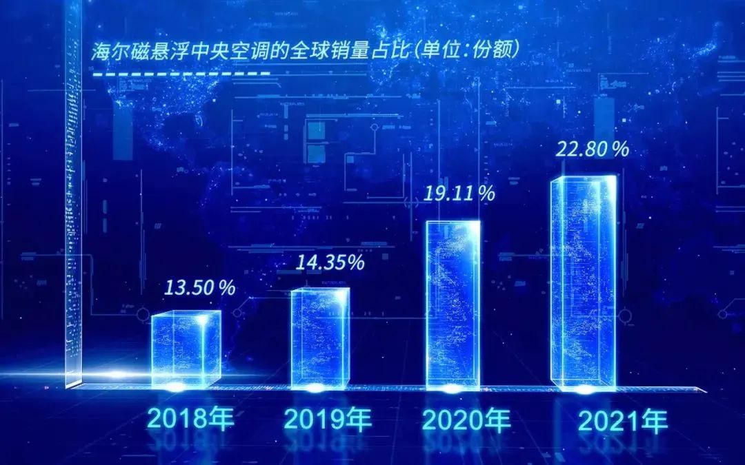 会中,北京智信道科技股份有限公司董事长杨洁在分享2021年到2022年磁悬浮中央空调市场现状与展望时表示,以海尔为代表的国内品牌持续不断地技术创新和市场拓展,从销售量数据上看,海尔在全球市场继续保持领先优势。