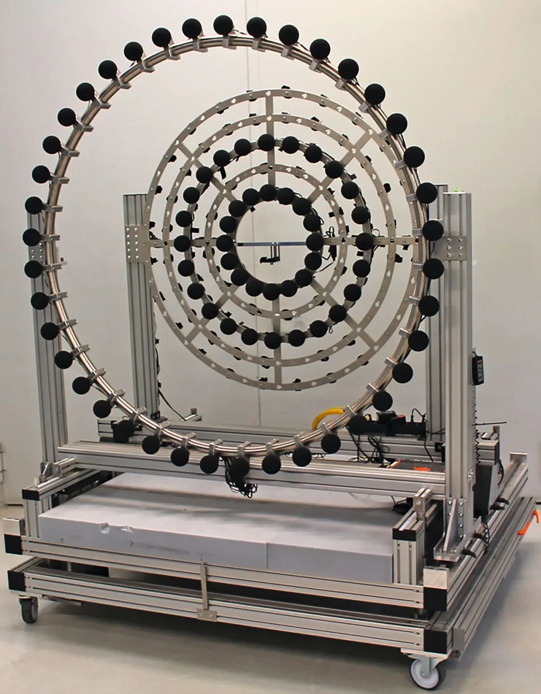 风机测试台的吸风侧使用圆形麦克风矩阵,其中80个麦克风分为两层布置。