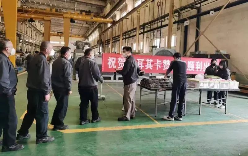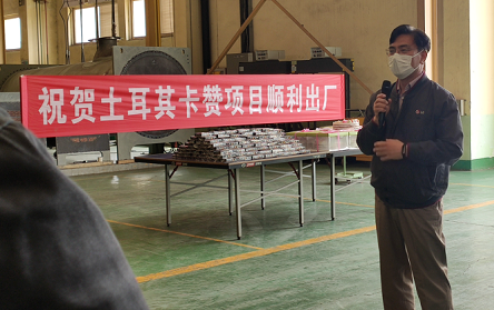 为祝贺土耳其卡赞项目顺利完工出厂,感谢员工的付出,特在青岛工厂举办了庆祝仪式。此次项目历时8个月的时间,在工厂各部门的密切配合及全体员工的共同努力下,于2022年4月份完工并顺利出厂!