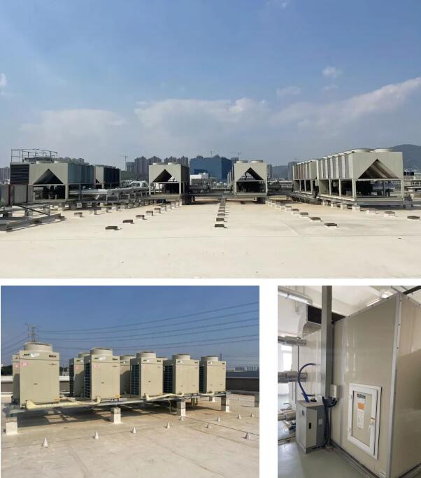 该研发中心的建筑包括有试验室和办公楼、物料存储间等,有不同的空调需求,需要兼顾工艺性要求和办公楼的舒适性要求;同时客户希望在满足各试验室独立控制要求下,实现快速获得测试环境温度,还要满足运行节能要求;也希望空调供应品牌能够提供一站式的打包服务。