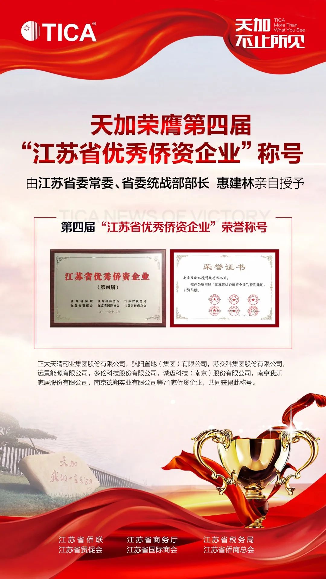 天加荣膺第四届“江苏省优秀侨资企业”称号