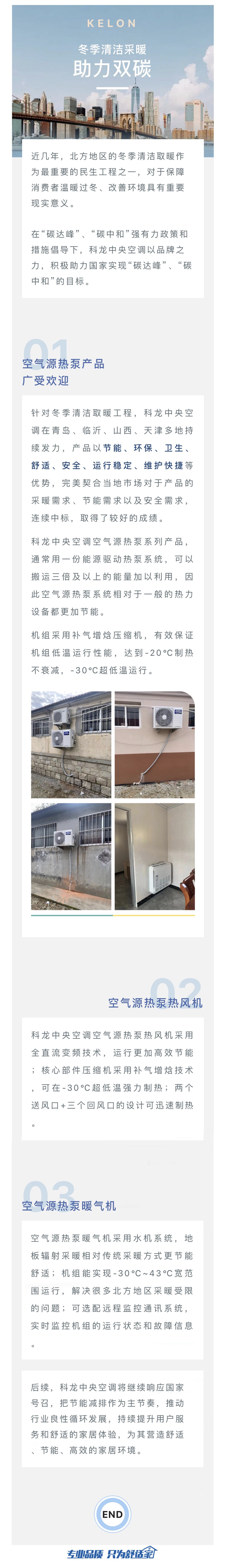 科龙中央空调深耕北方冬季清洁取暖项目,助力“双碳”