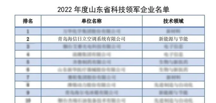 海信日立——山东省科技领军企业评选山东第二、青岛第一!