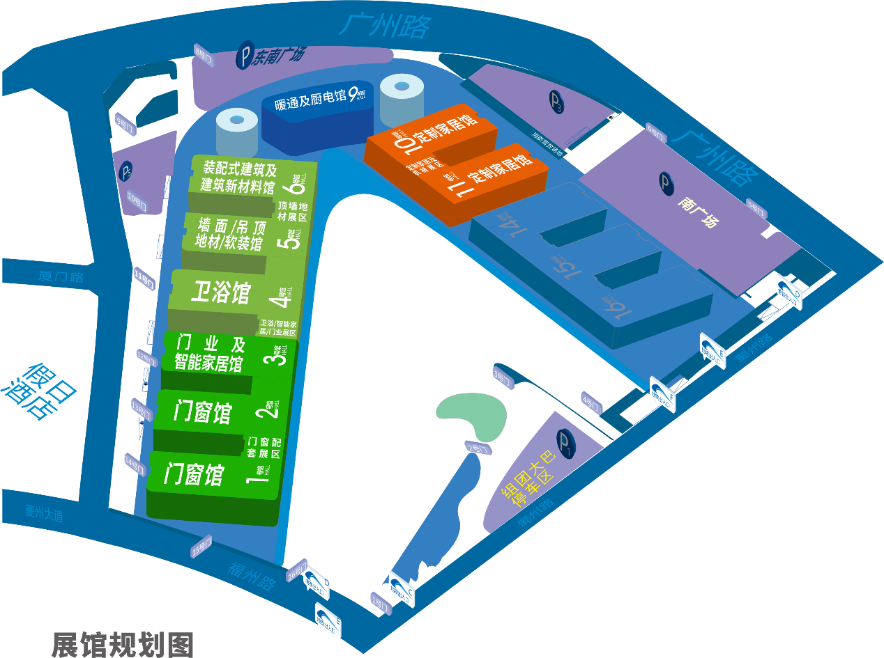 开展在即,招商工作已完成,截至发稿,本届大会已经得到业内众多品牌的大力支持,展会规模12万平方米,共9大展馆,其中1/2号门窗馆、3号门业及智能家居馆、4号卫浴馆、5号墙面/吊顶/地材/软装馆、6号装配式及建筑新材料馆、9号暖通/厨电馆、10/11号定制家居馆,总参展企业数量约1700家,汇聚如:凯达名门、大前门道、欧派门窗、科浦门窗、硅宝科技、百居益卫浴全卫定制、卡姆伦卫浴、家佳豪卫浴、百格淋浴房、Iu智能卫浴、友邦吊顶、鼎美顶墙集成、容声集成吊顶、德国舒尔茨漆、韩国韩亚、 华邦保和、摩利涂料、固硕宝、万事达、多维联合集团、华美集团、万和、博净、庆东纳碧安、美多、千山、红杉树、圣雅居、三维家、九千方等众多知名企业,将集中展示大家居建装行业企业的新产品、新技术和新理念,非常具有行业代表性和前瞻性。