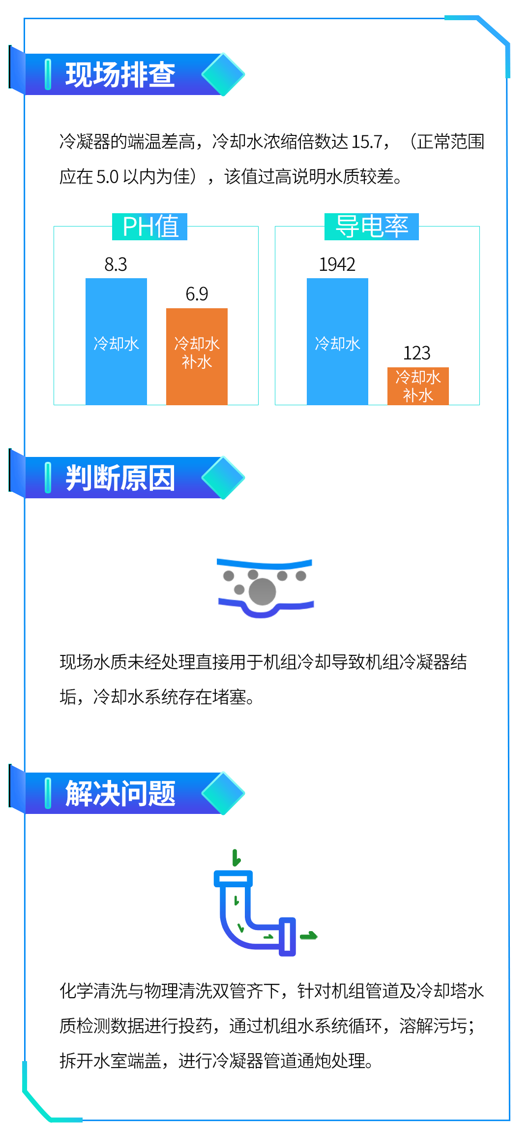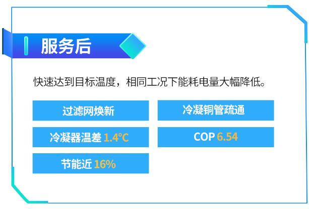 东阳东磁光伏园离心机投入使用以来,机组运行平稳,最高机器运行时长达近 5000 小时。但在高强度的使用过程中,部分设备出现冷凝压力过高保护,导致能耗数据出现波动,机组耗电量呈现上升趋势。针对此问题,美的楼宇科技服务团队制定了针对性解决方案,通过专业标准的流程检测及解决措施,迅速帮助用户实现节能降耗。