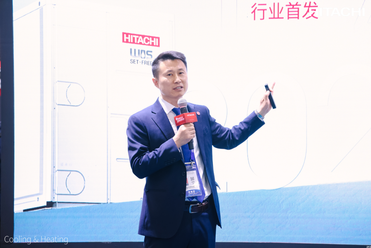 展会上,青岛海信日立空调系统有限公司客户支持部总经理 刘贵廷重点介绍了全新发布的日立变水流量水源变频多联式中央空调,从水源多联机发展史、产品优势、产品升级迭代方案等角度出发,细致阐述了日立的思考与践行。