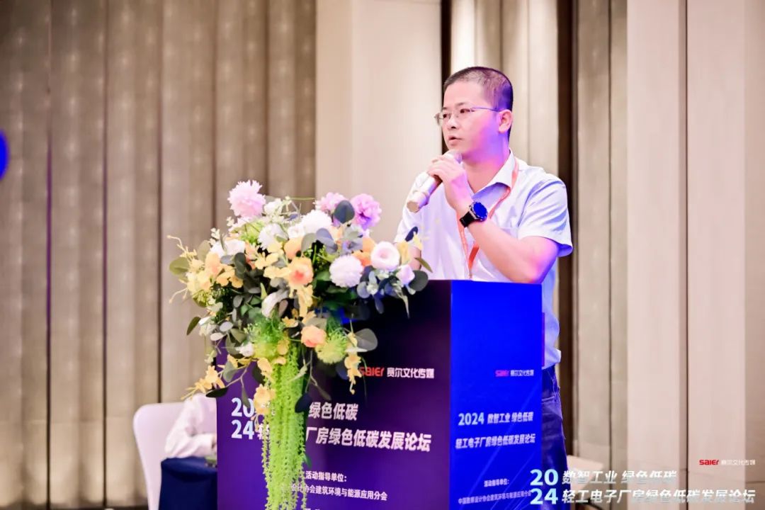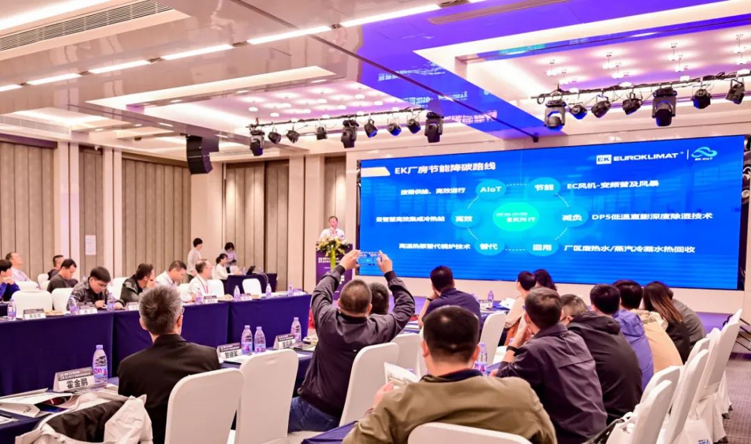 深入交流促提升,凝聚智慧共前行。会上,EK工业行业高级经理蔡晓辉以《轻工电子厂房节能低碳综合解决方案》为主题,向与会嘉宾介绍以“AIoT、节能、减负、替代、回用、高效”为关键词的EK厂房节能降碳路线和工业领域的核心节能产品,展示EK工业空调如何以更节能、低碳、智能的技术方案和产品支持轻工电子厂房绿色可持续发展。