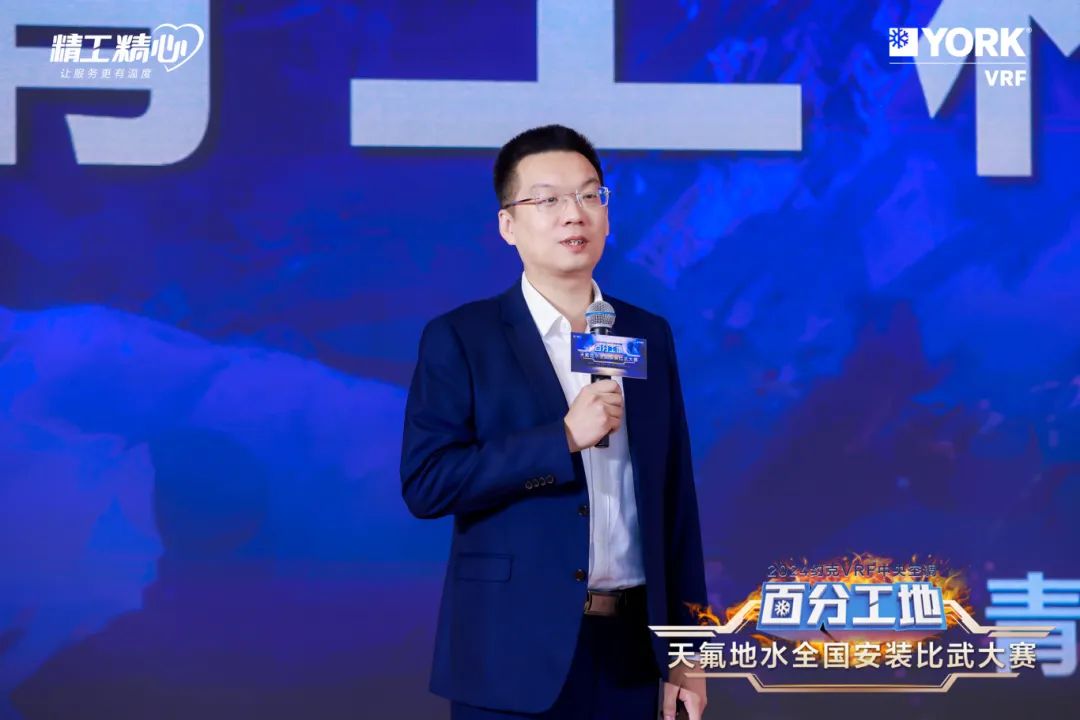 青岛江森自控空调有限公司总经理王学斌在发言中强调,“天氟地水”是中央空调和采暖融合的一种热泵两联供产品,它将全变频氟系统中央空调与水地暖系统通过控制技术融合成一个系统,实现一机两用,中央空调和地暖二合一。这种创新不仅提升了用户的生活舒适度,也对安装提出了更高的要求。作为天氟地水中央空调的领军企业,约克VRF有责任和义务规范和引领其安装质量。