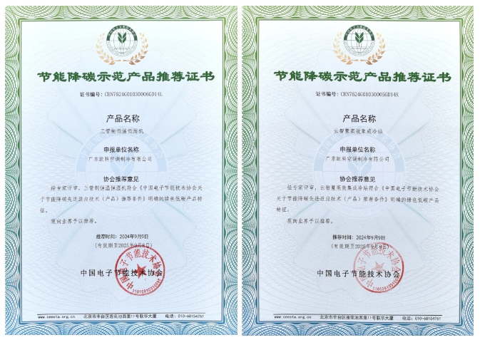 喜讯 | EK工业空调多款产品获“节能降碳示范产品推荐证书”!