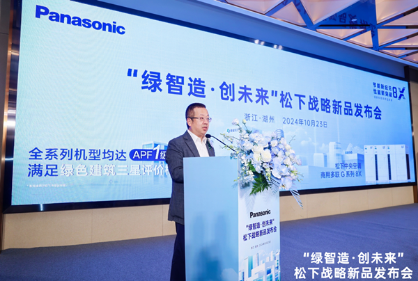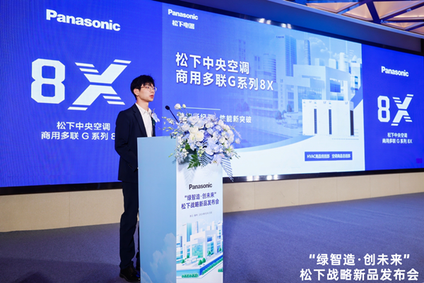 在一系列热情洋溢而专业的发言分享后,迎来了新品发布的璀璨时刻。松下电气设备刘书建表示,随着十四五规划的绿色节能发展政策和碳中和目标的提出,商业写字楼、办公楼、大型购物商场、银行、金融、教育、医疗、轨交等领域,对高效节能空调的需求日益增长。松下新品商用多联机G系列8X采用全新变频压缩机、高效核心部件、智能感知控制系统,具有高效节能、高舒适高品质、智能便捷等特点,可为商用场景提供定制化空气解决方案。