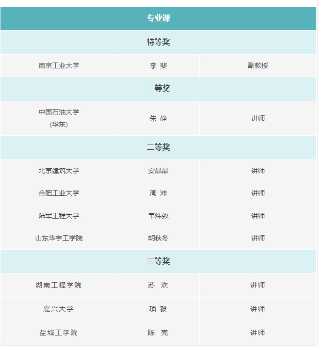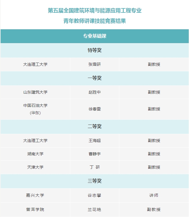 第五届全国建筑环境与能源应用工程专业青年教师讲课技能竞赛结果