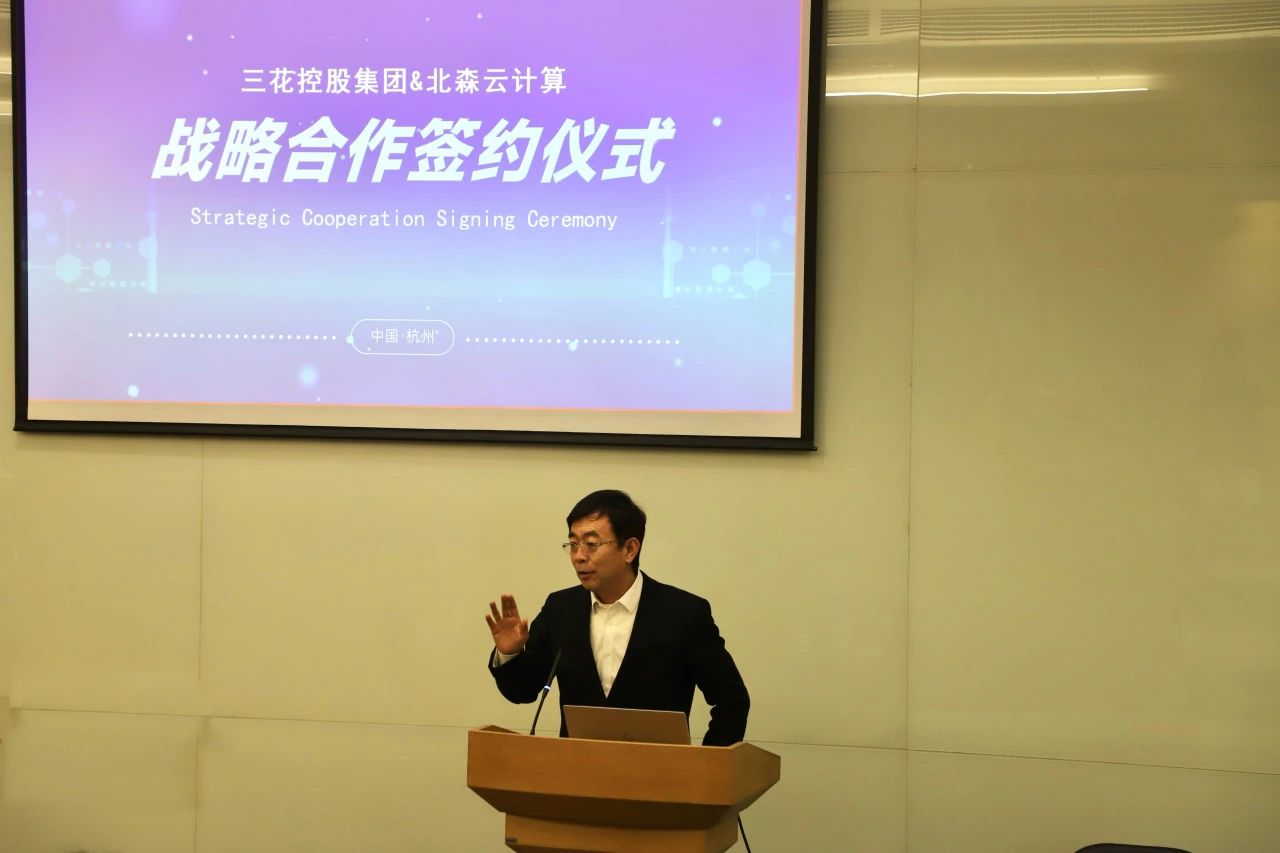 北森CEO纪伟国在发言中强调了绩效与人才管理的重要性,希望北森与三花的这次合作,通过绩效人才项目提升三花HR团队的专业能力。他表示项目应结合三花业务特点,因地制宜地推动战略目标落地。