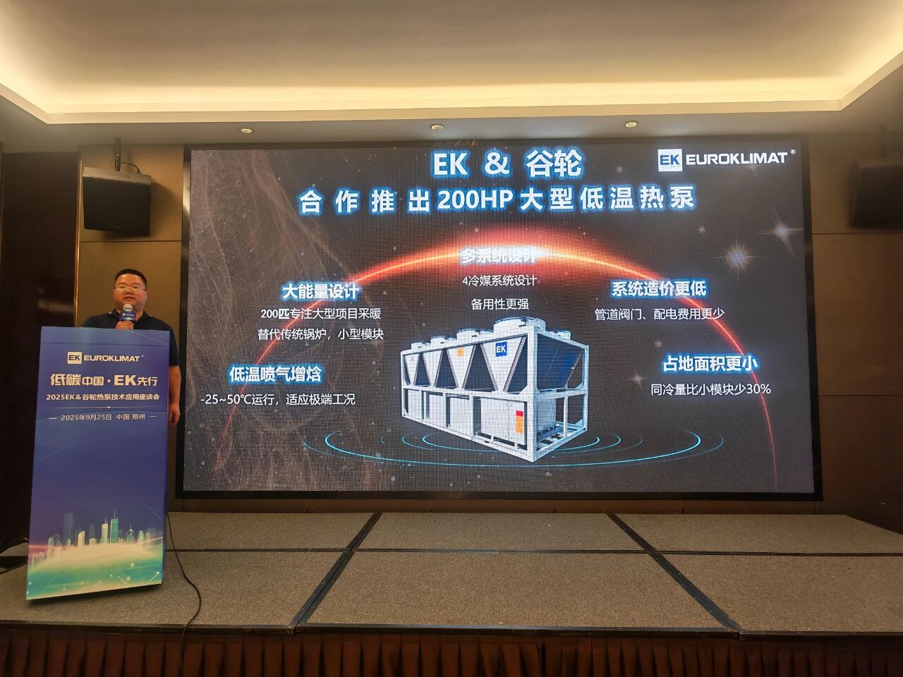 9月26日,“低碳中国·EK先行——2025EK&谷轮热泵技术应用座谈会(郑州站)”在郑州成功举办。