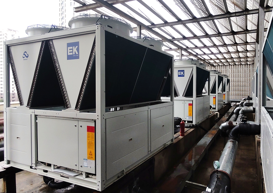 对于购物中心而言,冬夏两季的温度需求差异大,且空间广阔对冷热供应的稳定性要求极高。EK方案以11台全变频超低温空气源热泵机组为核心,精准匹配商场需求: