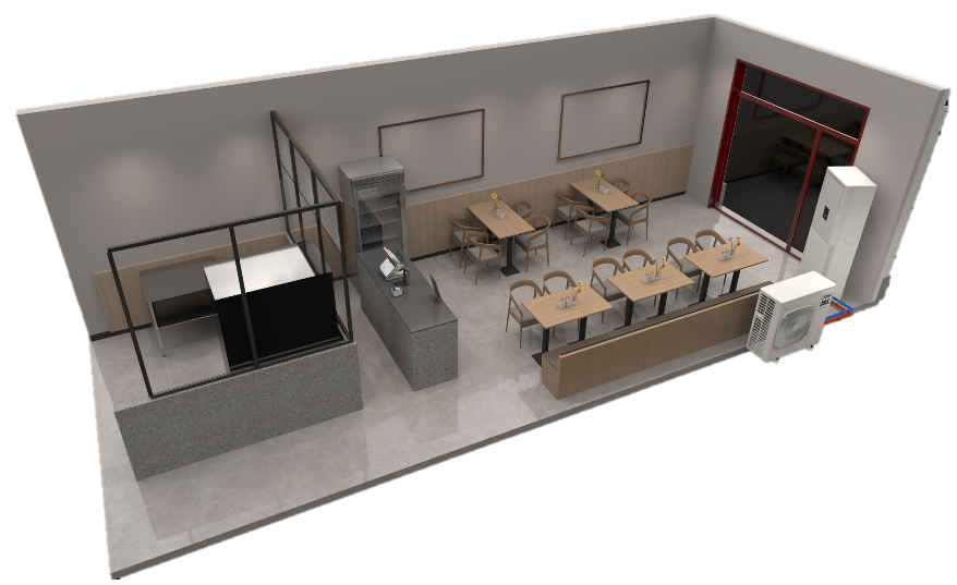餐馆在用餐高峰期容易闷热,普通空调冷量不足、送风距离短。海尔智慧楼宇BEST130变频工商柜拥有13kW超大冷量和2100m³/h超远距离送风能力,最远送风距离达15米,即便在开放式大厅也能快速降温,为顾客提供舒适就餐环境。