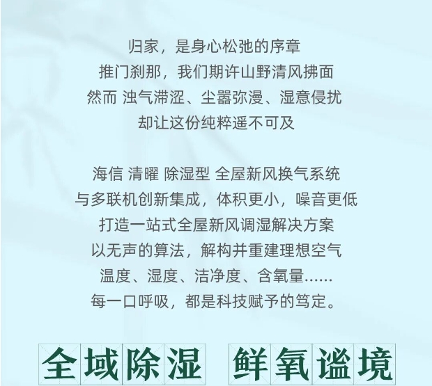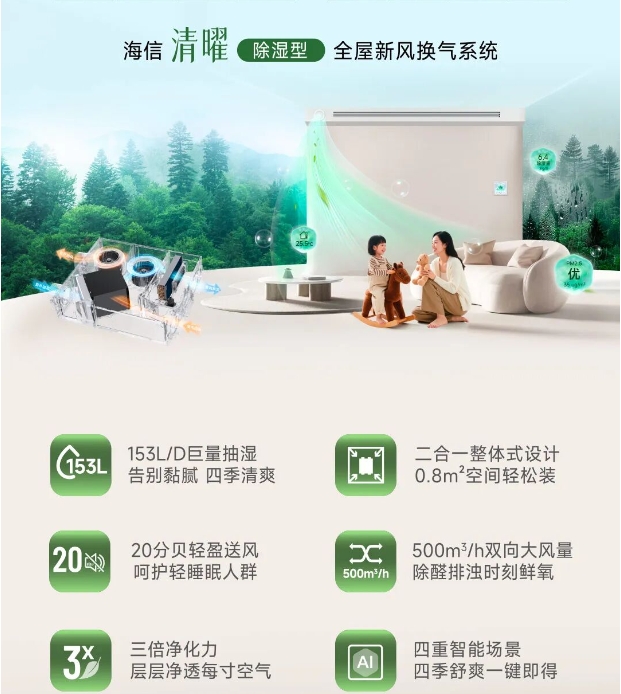 全域除湿 鲜氧谧境 | 海信清曜除湿型全屋新风换气系统上新!