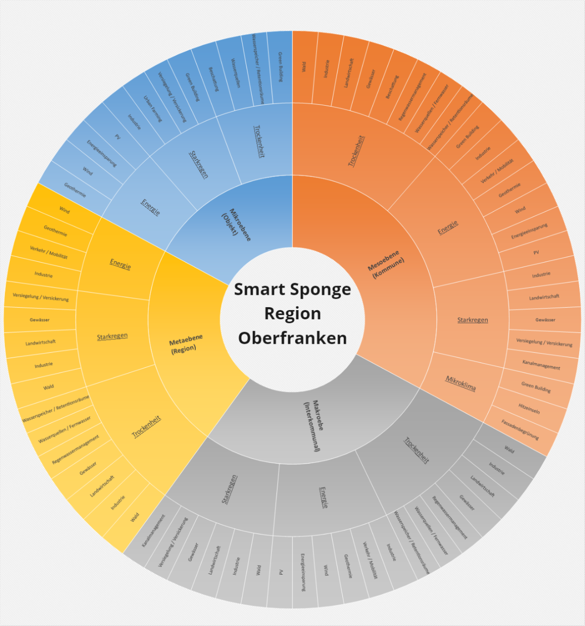 SPORE项目的独特之处在于其开创性的“多层次分析”方法。研究团队开发了名为“气候转盘”(Climate Wheel)的可视化分析工具,打破了传统规划中的“孤岛思维”,系统性地揭示了城市规划、农业与水管理之间的复杂互动关系,并据此在上弗兰肯地区落地了多个试点项目。