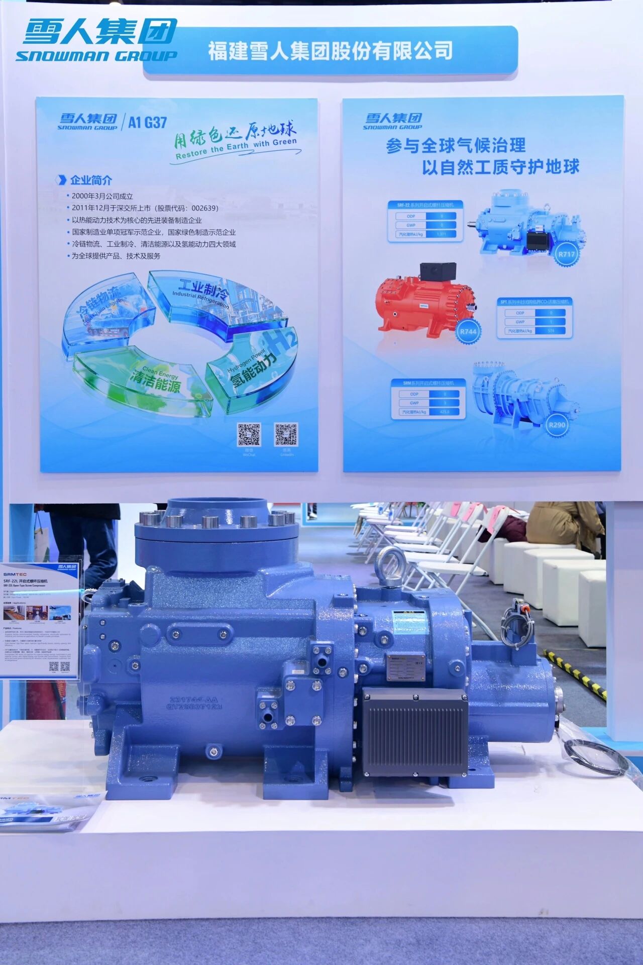 在主展位,雪人设置热泵展区、RefComp展区、食品冷链展区、无油离心压缩机展区、制冰系统解决方案展区五大展区,全面展现在冷暖领域的全链条技术实力与绿色发展理念。