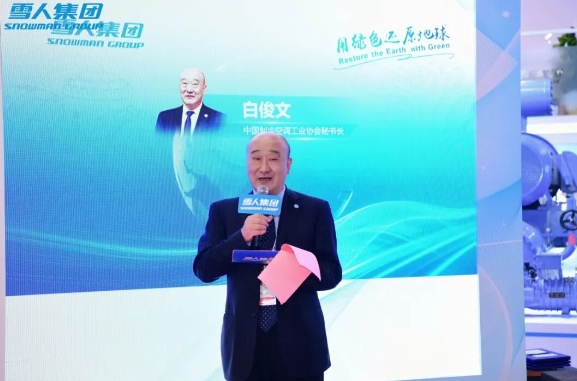 雪人集团总裁陈玲为仪式致欢迎辞,中国制冷学会理事长兼副秘书长李晓虎、中国制冷空调工业协会秘书长白俊文为庆典仪式致辞。
