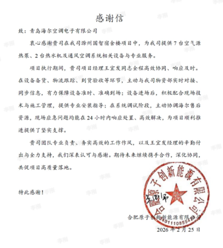 从方案前置到安装攻坚,从调试交付到维保响应,海尔战略用户工程履约团队用全流程的专业与温度,把“用户需求”兑现为“用户嘉奖”。每一个项目的平稳落地,都是这支“使命必达”团队的最佳注脚。