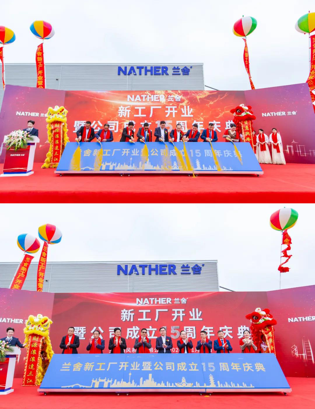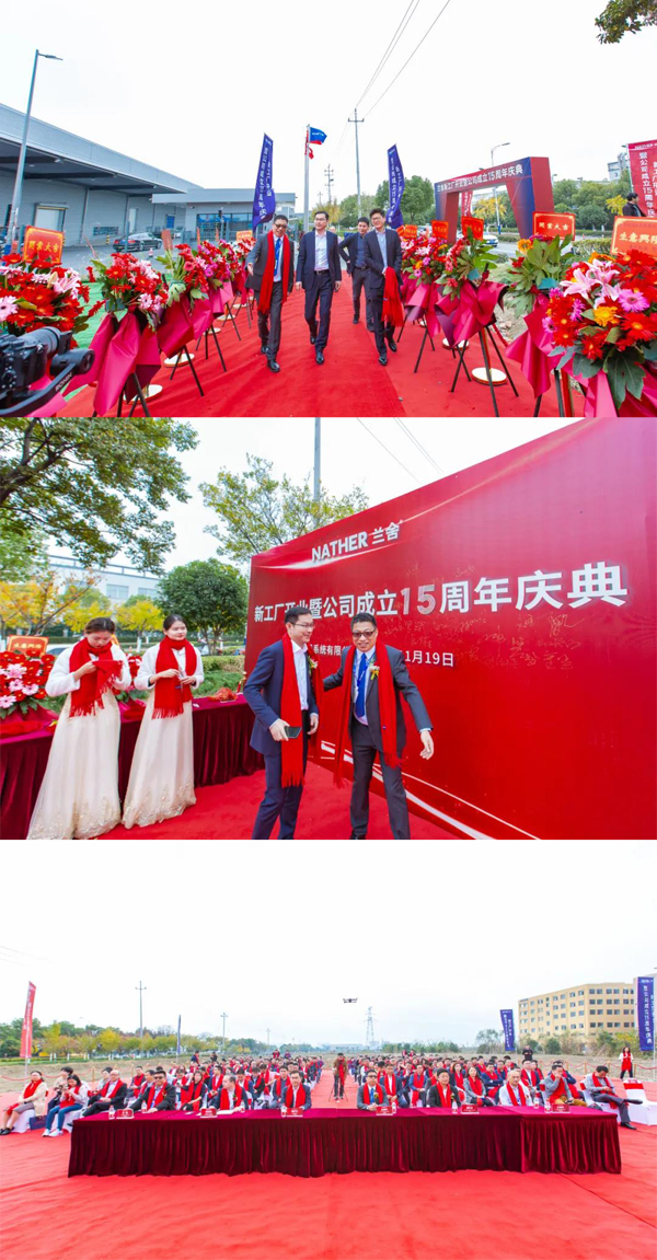 11月19日,兰舍新工厂开业暨公司成立15周年庆典于浙江平湖盛大举办,来自政府、机构、行业、媒体的领导专家,以及兰舍经销商、供应商、上百名员工齐聚彩旗飘舞的兰舍新工厂,共同见证这一具有特殊意义的时刻。